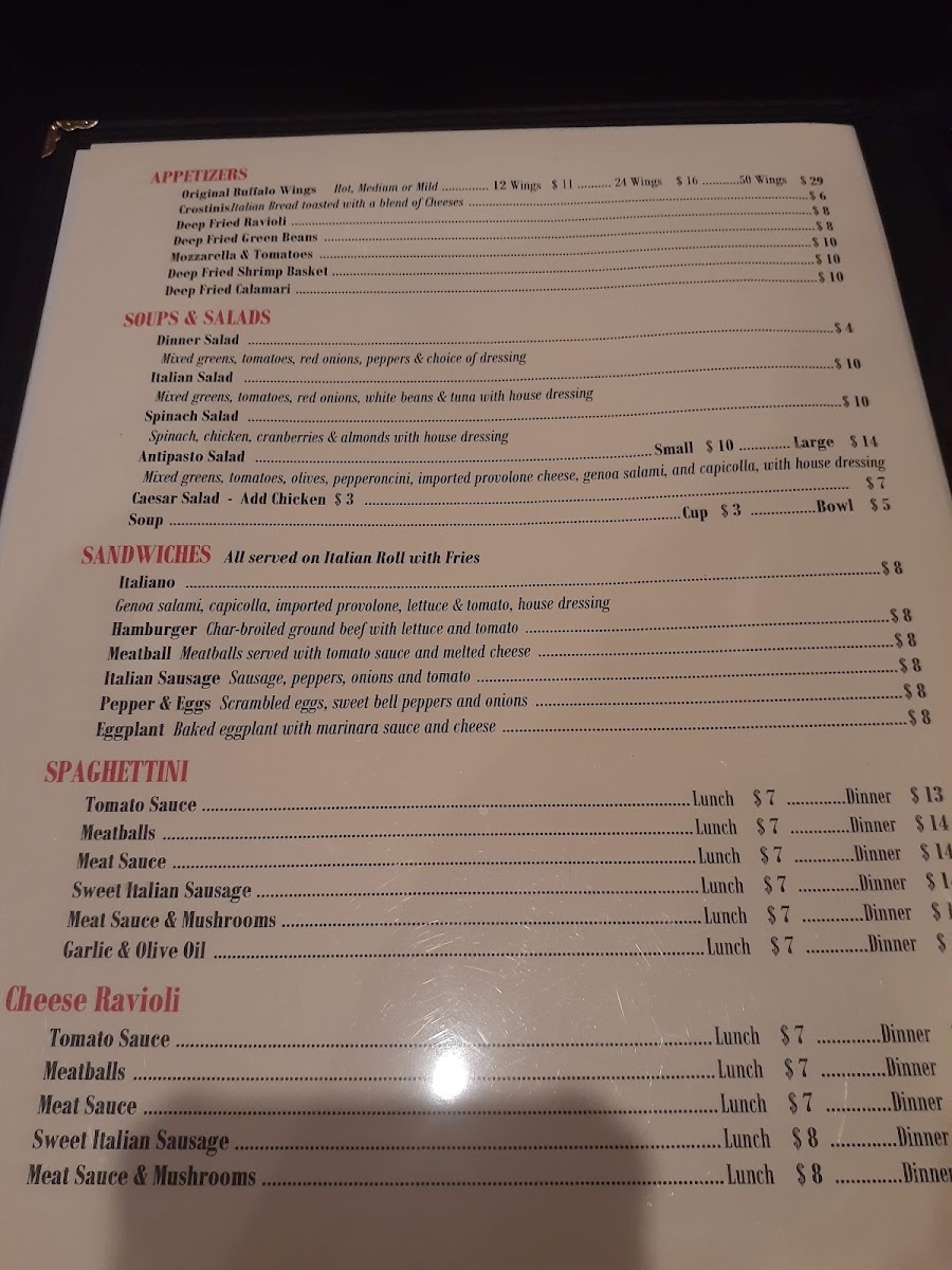Guests can enjoy comforting plates like creamy Fettuccine Alfredo with chicken or the rich, satisfying layers of Lasagna, while lighter options such as the Antipasto Salad or Strawberry Salad provide fresh, balanced flavors. The menu also includes playful touches like Deep-Fried Ravioli and Calzones, which fit nicely with the bistro’s warm, convivial atmosphere.