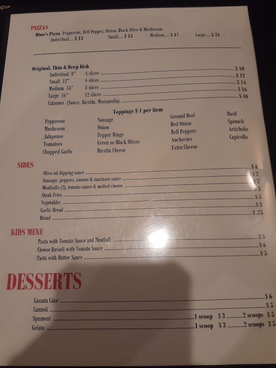 Dominic's Bistro Italiano Menu